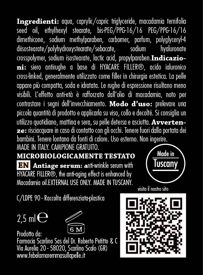 Anti-wrinkle serum with HYACARE FILLER®, the anti-aging effect is enhanced by Macadamia oil.